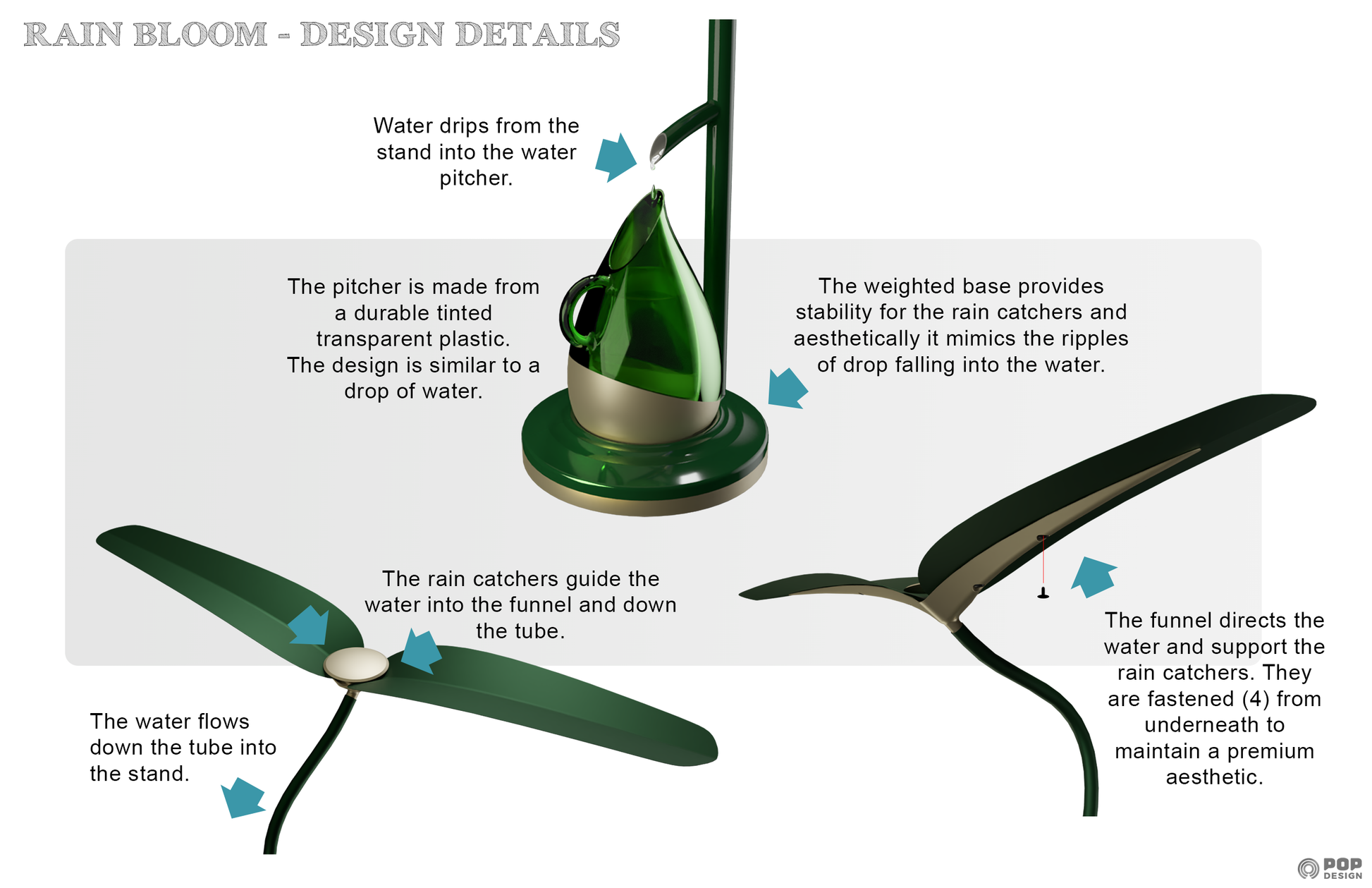This is our one of a kind RainBloom design that mimics the way plants reach out for water. RainBloom Ultra is not just an urban water collector, but a design statement. Made of high quality, recycled aluminum this rainwater collector is built to last.